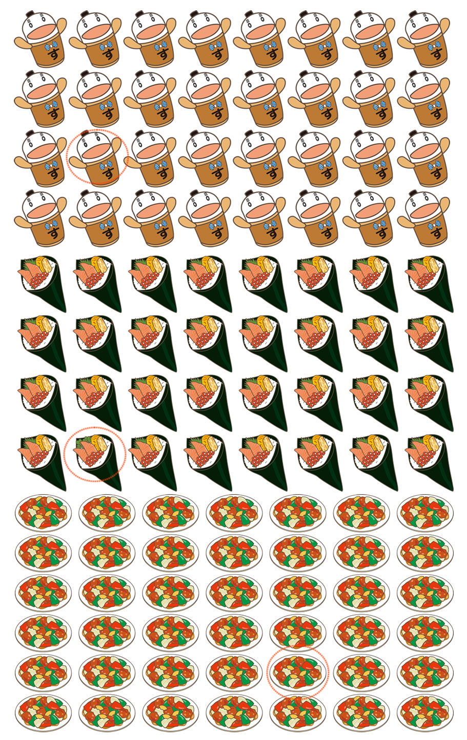 このコンテンツは、お子様向けに作った「ちがう絵さがし」です。 動画形式となっており、沢山ある絵の中から1つだけ違う絵をさがします。難易度別に全部で3問あります。答えが見つからない場合は、静止画を見たり、動画を「もう一度見る」などして、何度もチャレンジしてみてください。なお、答え合わせは上記にてクリックいただくと表示されます。ぜひお子様と一緒にお楽しみください。